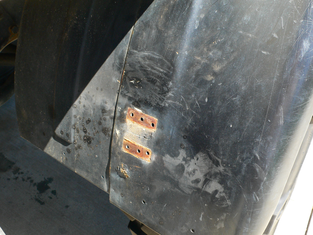 When I attempted to weld on the fender, the rust caused me to burn holes in the material. In the end, I had to put a backup plate on the inside of the fender to cover my damage. The real solution is to get a new fender.