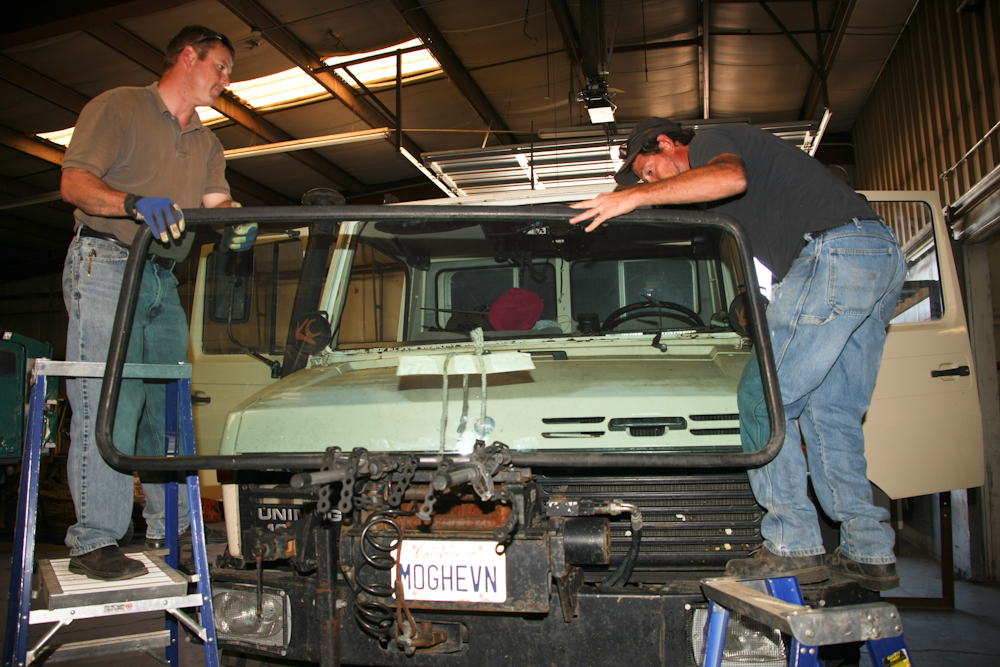 Rob Pickering and his helper Edwin put the gasket on the windshield before installing it on my 1300. Replacing the windshield is a 2-3 man job and does require some technique and a few tricks.