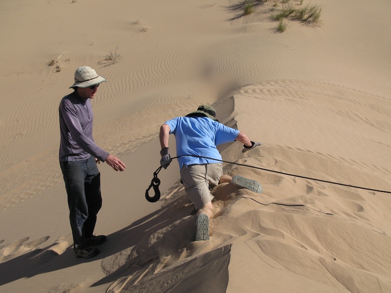 Bill ascends a steep dune face.