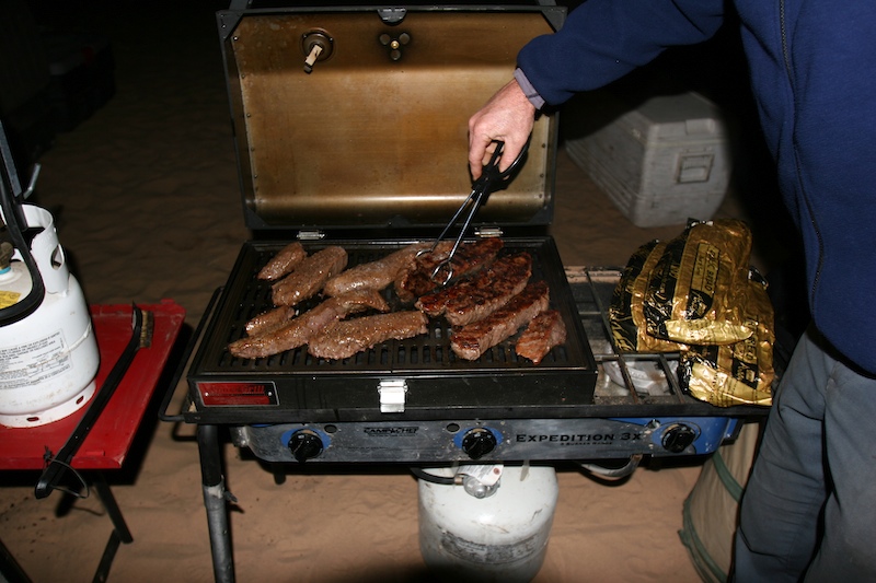 Ah, dinner. Matt and Nancy cooked steaks and garlic bread.