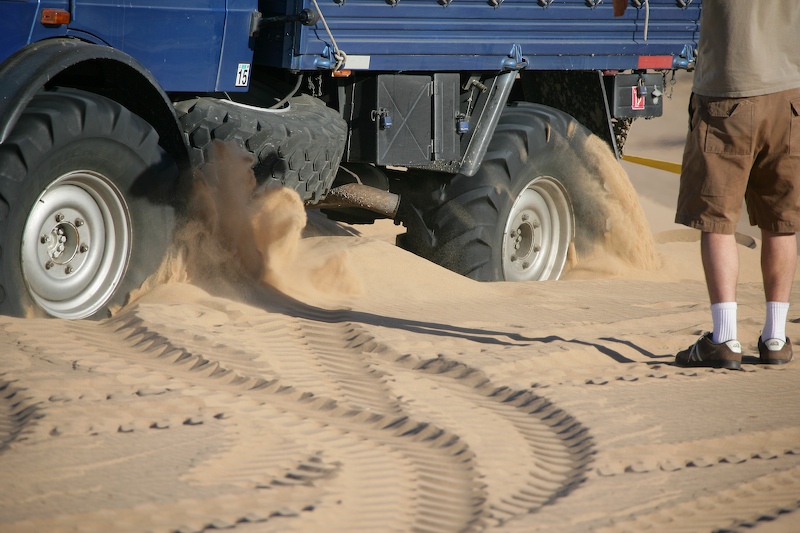 Mark digs ditches getting Roberto over the crest of the dune.