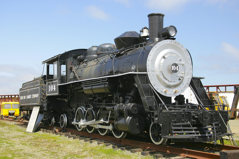 As we were making our way south on 101, we stopped for lunch in Coos Bay, OR and noticed this old steam loco at a park across the street. Number 104 was built by the Baldwin Locomotive Works for the Coos Bay Lumber Company in 1922 and was in active logging service from 1923 - 1954. This loco was capable of hauling up to 100 fully loaded cars and had a tractive force of 27,800 pounds. No. 104 weighed 145,000 pounds and the tender car weighed another 97,000 pounds. Like all locomotives of this era, it used high pressure steam to derive power. But, unlike earlier models, No. 104 was oil fired. Locos of this style were common throughout the west.