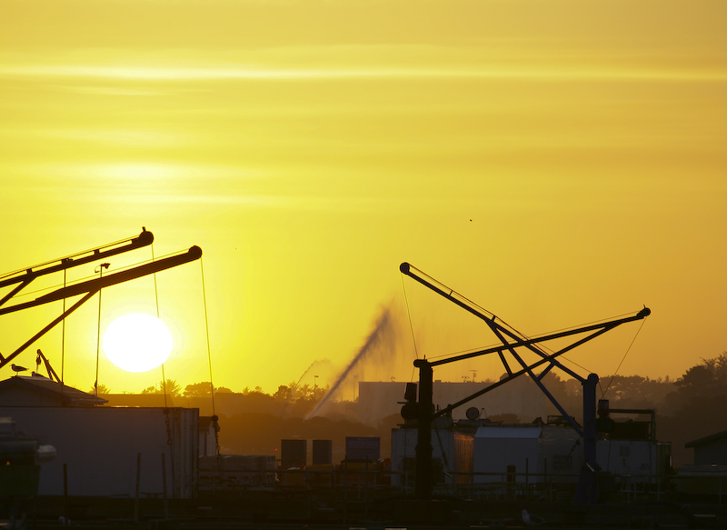 The setting sun profiled the many large rocks just off the shoreline. These rocks are an ever-present danger to the fishing fleets that operate in these waters.