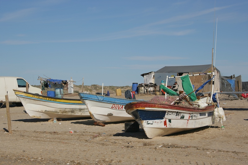 The fisherman on the porch of the camp just watched us as we did our photo shoot. Note the fiberglass pangas that are common to fishermen in the Sea of Cortez.