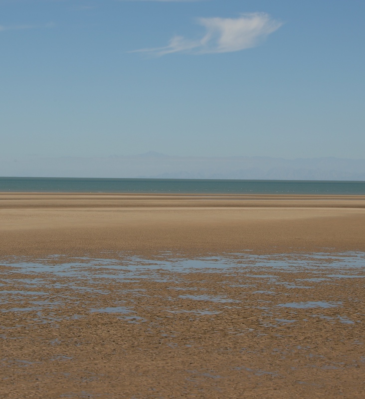 When the tide goes out, it is a long, long way from the beach to the water. Pichacho del Diablo, the 10,000 foot peak in Baja, is on the distant horizon, perhaps 80 miles away.