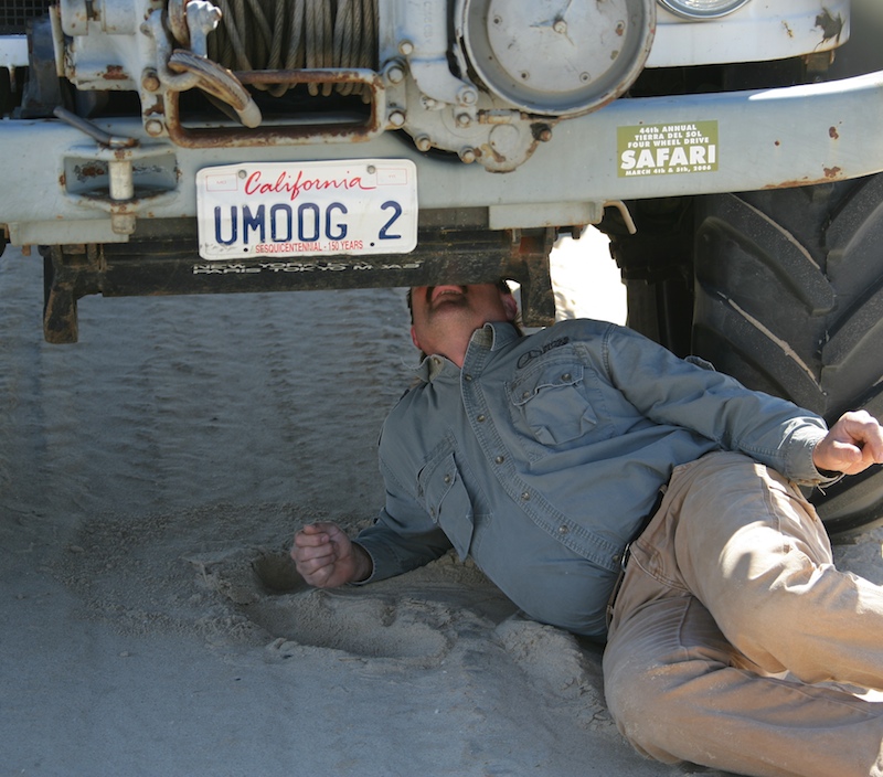 Rats!! Kai developed a leak in his high pressure air line. Here he gives the truck a close visual inspection in an attempt to resolve the problem. In the end, he could not repair it and just drove it home with the air leaking as it did not impair safe operation.