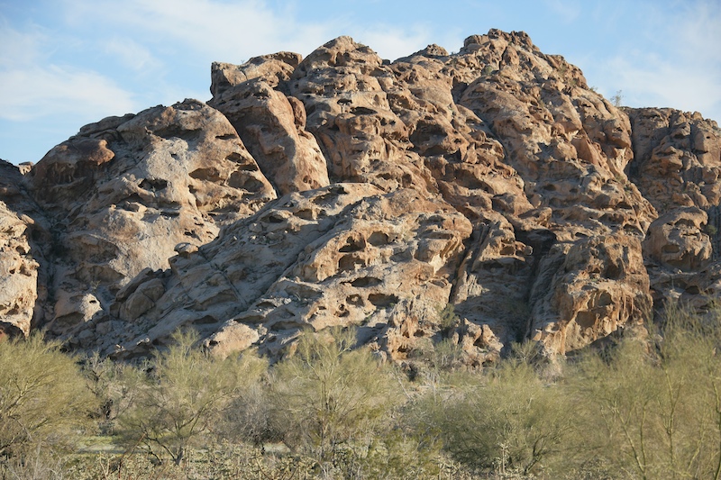 Wind caves eroded into the cliffs to the west of Guadalupe Canyon. These cave areas hide indian petroglyphs that we would visit the following day.